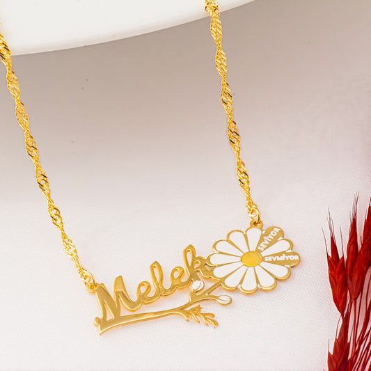 İNDİRİM 37%İsimli Papatya Kolye - Burgu Zincirli