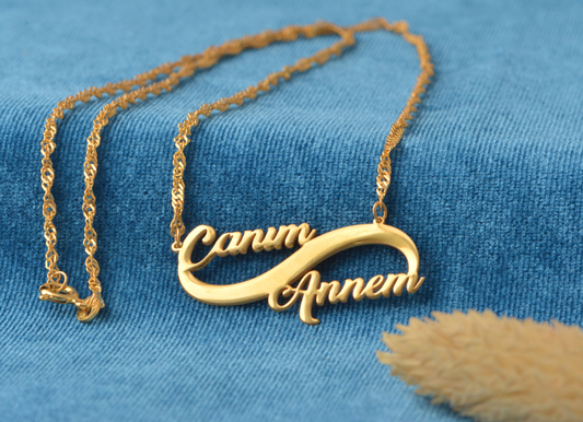 İNDİRİM 43%İki İsim Üst Üste Kolye - Burgu Zincirli