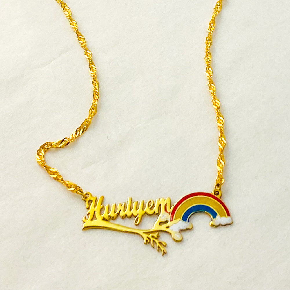 İsimli Gökkuşağı Kolye - Burgu Zincirli
