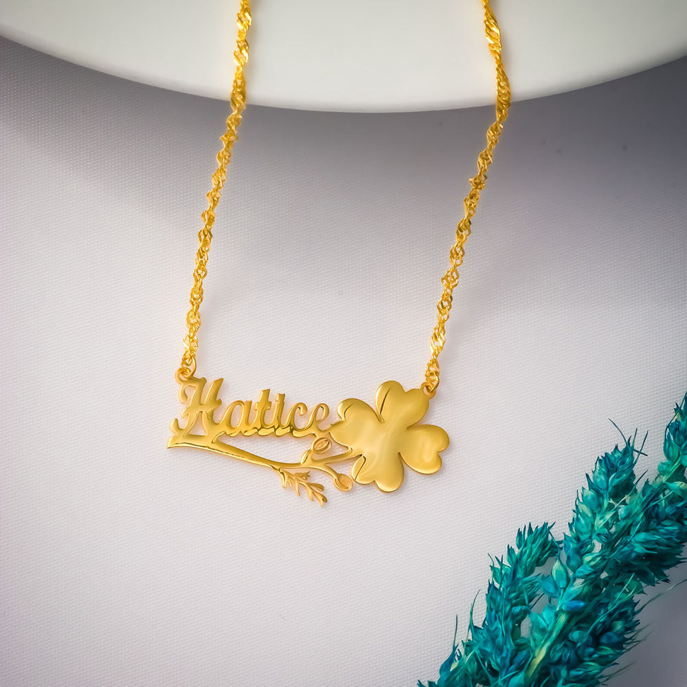 İsimli Yonca Yaprağı Kolye - Burgu Zincirli